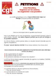Crise Pétrolière, Urgences sur les salaires, les augmenter c’est possible ! Deux pétitions sont lancées à destination des agents du CHU de Nantes (disponibles dans nos permanences ou bientôt dans vos services), pour accompagner les courriers suivants : ● Le premier adressé au directeur général du CHU de Nantes → Pour des mesures locales ● Le second adressé à la ministre de la santé → Pour des mesures nationales