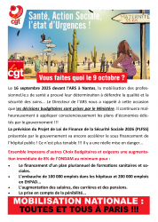 Le 16 septembre 2025 devant l’ARS à Nantes , la mobilisation des professionnel.le.s de santé a prouvé leur détermination à défendre la qualité et la sécurité des soins... Le Directeur de l’ARS nous a rappelé à cette occasion que l es décisions budgétaires sont prises par le Ministère . Il continuera malheureusement à appliquer consciencieusement les plans d’économies édictés par le gouvernement !!! La prévision du Projet de Loi de Finance de la...