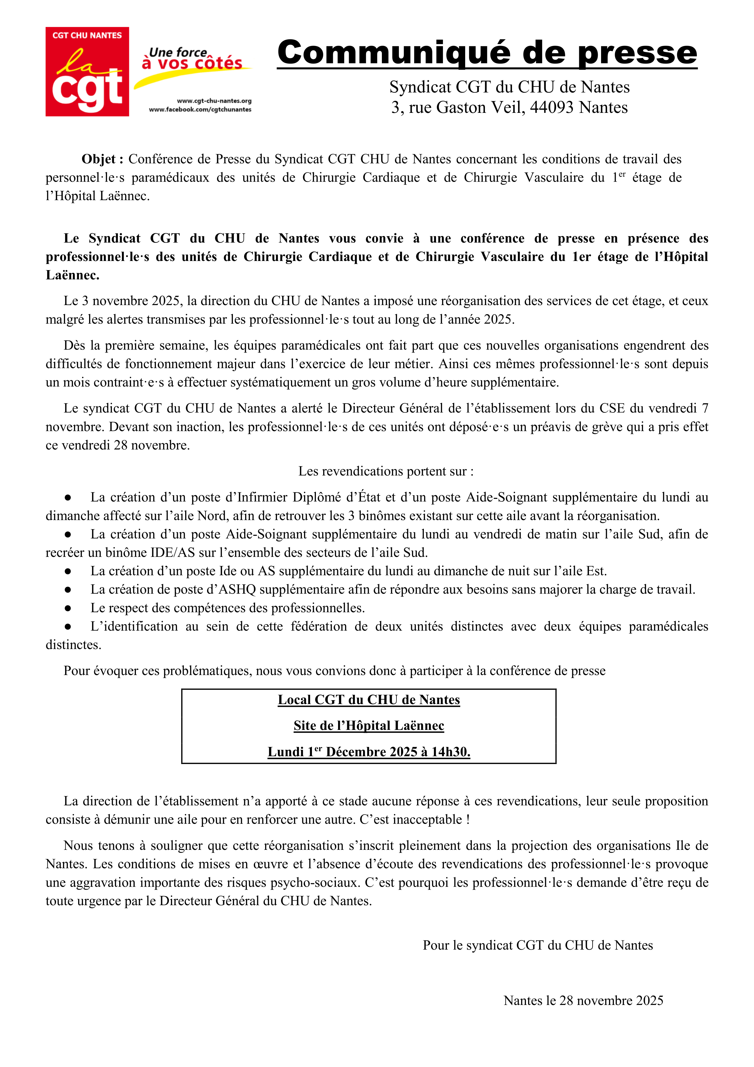 La création d’un poste d’Infirmier Diplômé d’État et d’un poste Aide-Soignant supplémentaire du lundi au dimanche affecté sur l’aile Nord, afin de retrouver les 3 binômes existant sur cette aile avant la réorganisation.